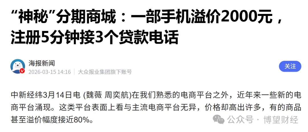 2025年10月,助贷新规落地之际,一批披着“分期购物”外衣的线上商城快速崛起,恒昌系也在此时完成第三次换壳,推出新平台恒生活借款。试图借助分期商城通过“商品分期+高溢价”包装,将部分借款成本转移至商品价格,将明面上的利率压至24%以下。但据中新经纬报道,这类分期商城中,部分商品溢价率可超80%,这导致用户真实融资成本大幅超标。