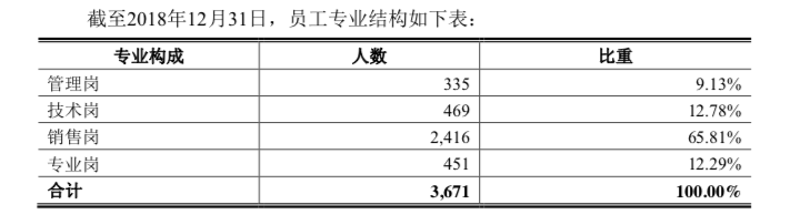 而拉卡拉2018年,技术人员占比为12.78%,研发费用占营收比率为4.81%。远低于汇付天下。公司销售人员占比却高达65.81%,难道拉卡拉不是靠技术创新而是靠销售驱动的公司?