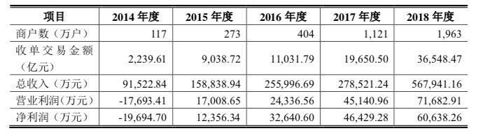 2012 年,拉卡拉全面进入企业收单服务市场,行业先发优势较大,积累了一定规模的商户。2014年,拉卡拉收单业务商户规模迅速增长,从19万户增加至117万户,公司交易量和利润保持同步增长。随后,拉卡拉陆续开发出mPOS、智能POS、超级收款宝等创新收单产品,营业收入和净利润继续保持较高增长。