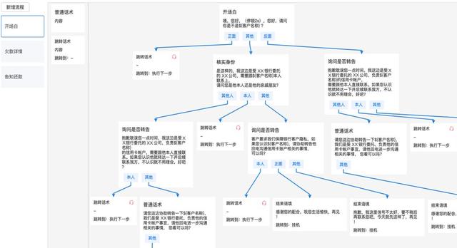无论是人工还是AI,话术都是电销的核心竞争力之一,而话术可剧本化给了AI取代人工的机会。以催帐业务开场为例,每次客气问好后都要确认客户身份,根据是否本人进行下一步告知欠款流程,不是本人那就请求告知本人。出现没有考虑到的情况可以继续讲台本,也可以找个信号不好的理由挂机。流程是确定的。