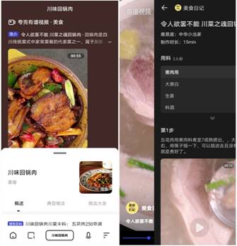 给用户高效、直观、有用的视频化信息搜索,夸克率先优化了美食类视频内容的呈现与体验。针对美食视频中大量的回看、暂停、重复观看等用户痛点,夸克增加了视频播放器的左滑浮层,可以完整展现烹饪菜肴的细节步骤和知识点,还实现了搜索结果中视频与图文的双层展示,做菜技能一遍学会。