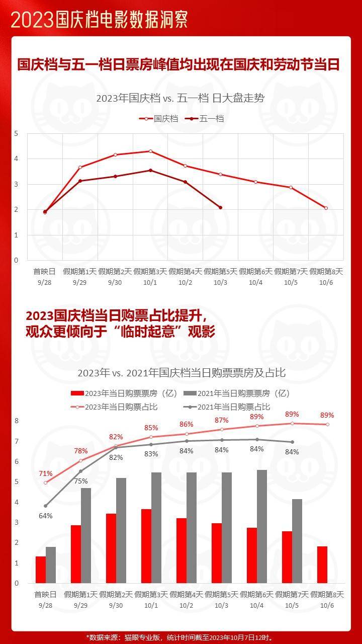 10月7日,猫眼研究院联合微博电影发布《2023国庆档电影数据洞察报告》(以下简称《报告》),分享多项电影市场洞察。