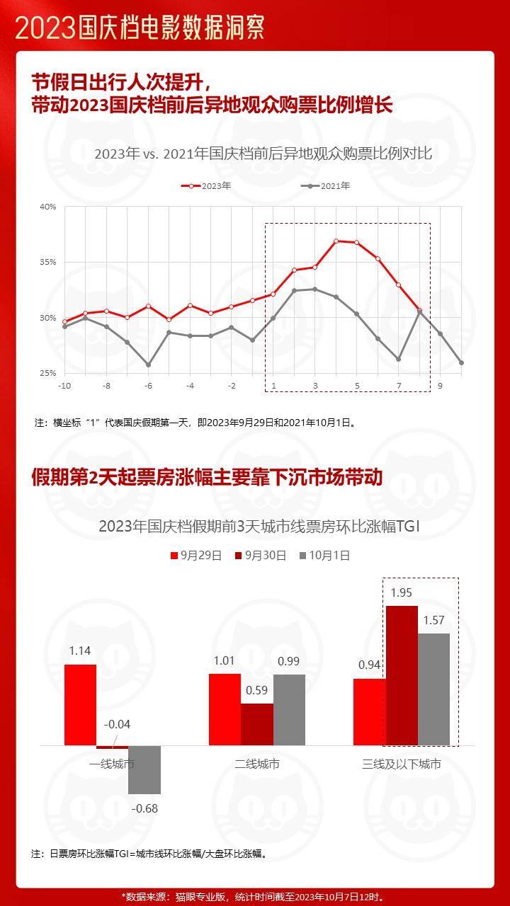 票房的稳步发展背后,异地观众购票占比与下沉市场票房,成为今年国庆档的亮点所在。