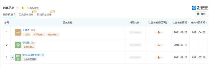 这表明婴贝儿在此次事件中并不是一个普通的“销售渠道”,而是通过股权连接,深度参与了涉事产品委托生产以及品牌运作的过程,并且从中获得了一定的经营收益。进一步调查发现,婴贝儿的创始人贾俊勇、刘长燕也通过核心经营主体间接持有涉案委托公司股份。由于存在“你中有我”的股权结构,使得婴贝儿无法以“供应商的问题”来推卸责任,其品控责任被无限放大。