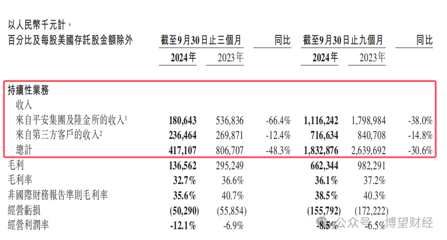 2024年前三季度,来自平安集团和陆金所控股的收入合计11.16亿元,占比60.9%。尽管占比略有下降,但并未出现根本性改变。