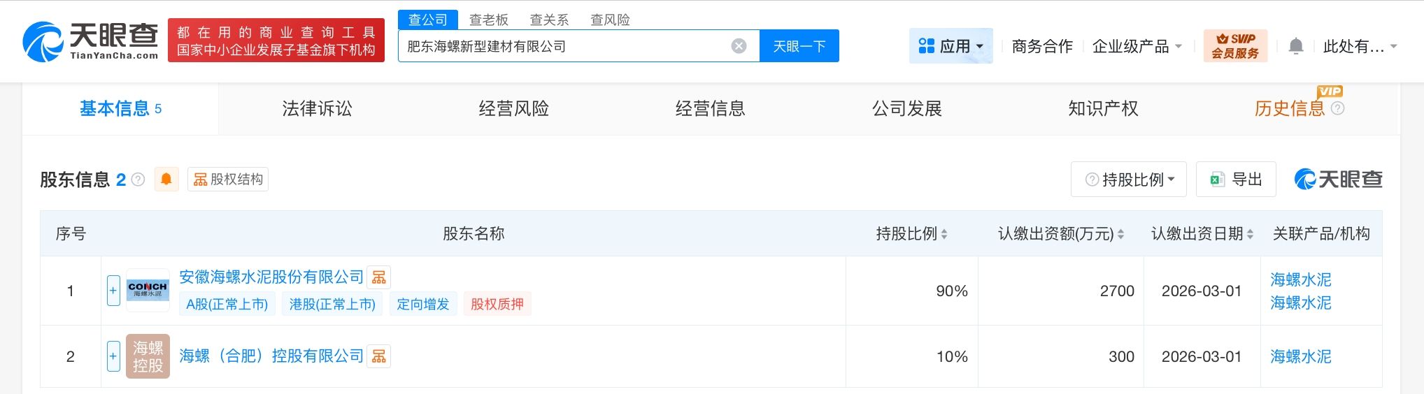 天眼查工商信息显示,近日,肥东海螺新型建材有限公司成立,法定代表人为程小兵,注册资本3000万人民币,经营范围包括水泥制品制造、砼结构构件制造、轻质建筑材料制造、轻质建筑材料销售、水泥制品销售、建筑材料销售、非金属矿及制品销售、建筑装饰材料销售等。股东信息显示,该公司由海螺水泥(600585)及旗下海螺(合肥)控股有限公司共同持股。
