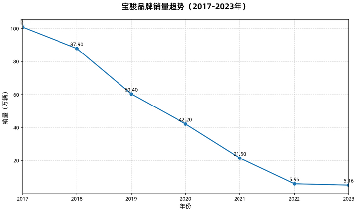 宝骏曾经是中国车市 “性价比神话” 的代名词。2017 年巅峰时期年销突破 100 万辆,宝骏 730、510、560 等车型长期霸榜细分市场,成为下沉市场与家庭用户的首选品牌。但此后一路下滑,几乎是 “六年跌回原点”。
