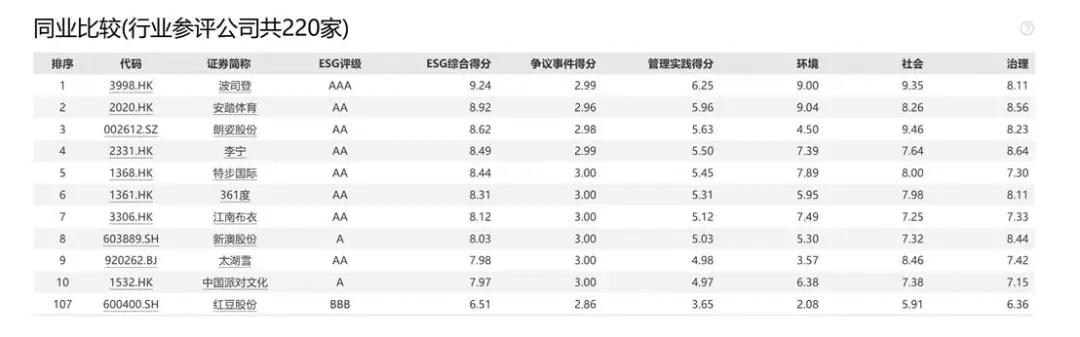 在ESG方面,红豆股份的表现并不突出。根据万得评分,红豆股份评级为BBB,位于行业中游水平。