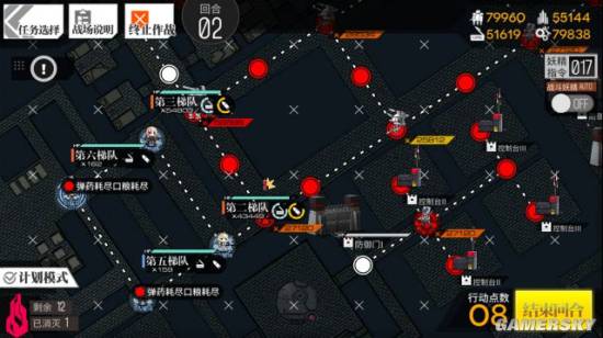 最后一回合,主力二队从右边绕路占领雷达,路上会打掉剩下的两个掉落怪,结束回合,取得S胜。