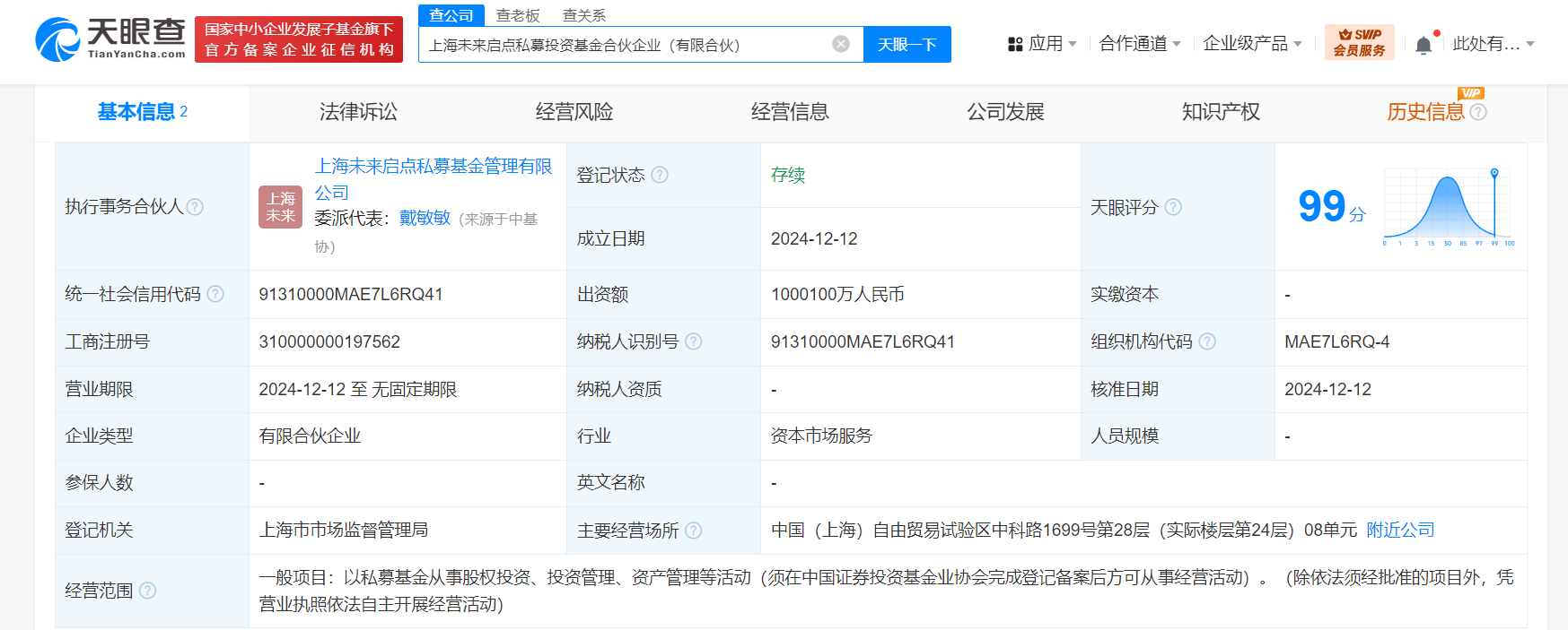天眼查App显示,近日,上海未来启点私募投资基金合伙企业(有限合伙)成立,执行事务合伙人为上海未来启点私募基金管理有限公司,出资额100.01亿人民币,经营范围为以私募基金从事股权投资、投资管理、资产管理等活动。