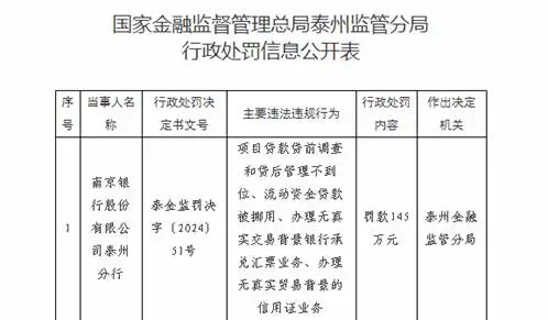 其中2025年以来就被罚款3次:泰州分行因贷前调查和贷后管理严重不足,被监管部门罚款145万元;扬州分行因“员工行为管理不到位”被扬州监管分局罚款40万元;南京银行总行因“监管统计指标计量不准确”被罚款70万元。