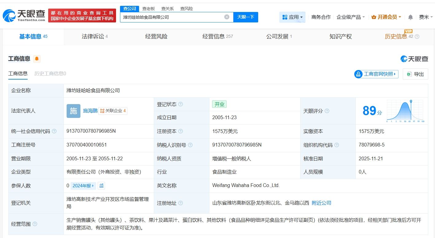 虎林市宏胜饮料有限公司成立于2011年6月,注册资本800万美元,经营范围包括食品生产、饮料生产、食品销售等。股东信息显示,该公司由丽水宏博饮料有限公司、荣辉投资有限公司共同持股。值得一提的是,近期,祝丽丹还卸任了潍坊娃哈哈饮料有限公司、潍坊娃哈哈食品有限公司、衡阳恒枫饮料有限公司等超十家宏胜集团旗下公司职务。