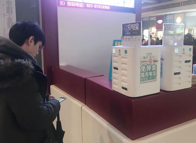 6日下午,在虹桥火车站到达层大厅,不时有旅客借还怪兽充电共享充电宝,有的柜机内充电宝甚至全部被借走。服务人员称,她所在的虹桥商旅咨询处,之前便有大量旅客游客存在手机充电需求,上新怪兽充电后,这些用户的需求便可以得到充分满足了。