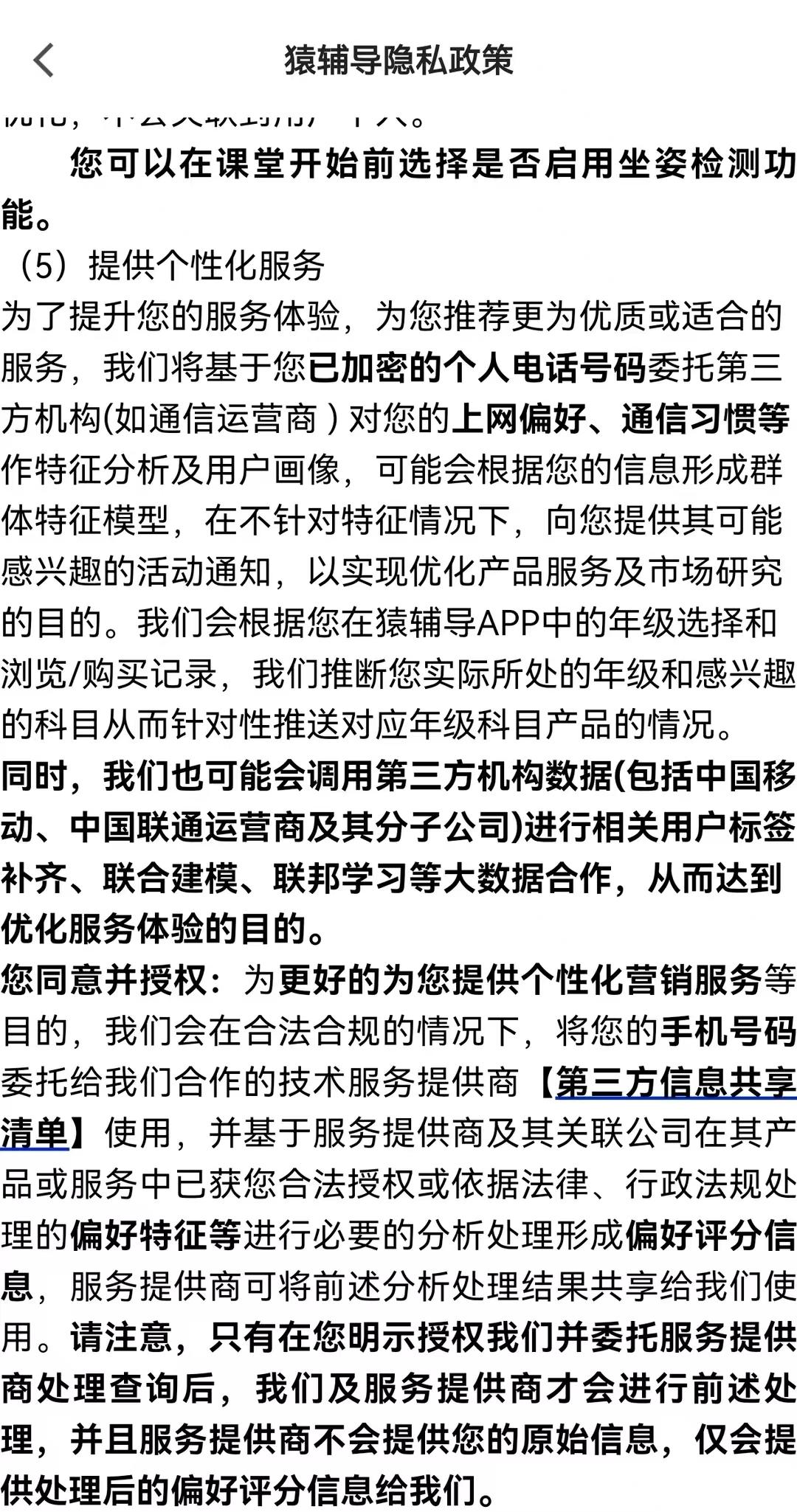王莹律师还提到:“猿辅导APP隐私条款中若包含‘不同意营销授权即无法使用APP’的内容,涉嫌违反《个人信息保护法》,该条款因以拒绝提供服务胁迫用户同意非必需的个人信息处理而可能无效。”
