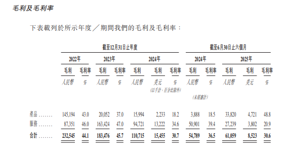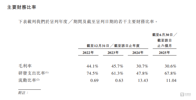 高额研发投入并未带来相应的盈利支撑,反而出现毛利率下滑的情况。招股说明书显示,报告期内公司毛利率分别为44.1%、45.7%、30.7%、30.6%,其中2024年毛利率同比大幅下滑15个百分点。