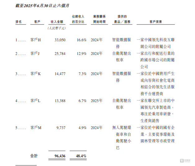 笔者注意到,文远知行正深陷“市场地位领先”与“经营业绩疲软”的强烈反差之中。尽管在2024年以城市道路L4级及以上自动驾驶收入计,其全球排名第二,占据21.8%的市场份额,且所处行业前景广阔,在高研发下,自身业绩却持续承压,2022年-2024年营收年均复合增长率低至-17.24%。特别要说明的是,作为长期贡献主要收入的客户A,其2024年销售金额同比锐减60.31%,收入占比骤降至24.4%,而2025年上半年,客户A更是彻底退出前五大客户名单。
