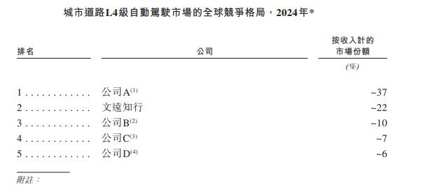 文远知行是一家L4级自动驾驶领域的企业。截至最后实际可行日期,文远知行部署的自动驾驶产品及解决方案覆盖中国、阿联酋、沙特阿拉伯、瑞士、法国、新加坡、日本等十一个国家的30多个城市。根据灼识咨询的资料,2024年,以城市道路L4级及以上自动驾驶产生的收入计,文远知行全球排名第二,占据21.8%的市场份额。