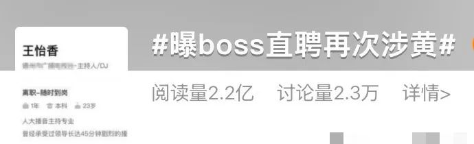 近日,因为一句“曾承受过领导长达45分钟剧烈的撞击”,#BOSS直聘再次涉黄#登上热搜。