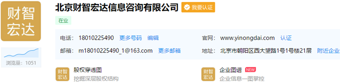 工商资料显示,誉达信恒咨询服务(北京)有限公司(简称:誉达信恒)成立于2013年5月10日,注册资本100万元,法人代表何慧君,唯一股东为自然人赵立人。企查查数据显示,誉达信恒对外投资了北京财智宏达信息咨询有限公司,后者为宜农贷的运营主体。