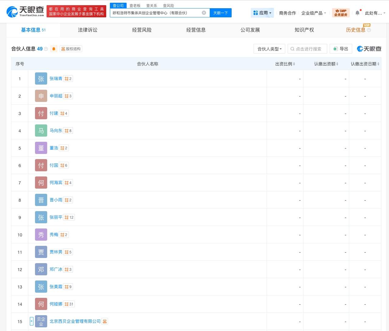 天眼查App显示,近日,呼和浩特市集体共创企业管理中心(有限合伙)成立,执行事务合伙人为北京西贝企业管理有限公司,出资额约9210万人民币,经营范围为企业管理咨询。合伙人信息显示,该企业由北京西贝企业管理有限公司及40余位合伙人共同出资。
