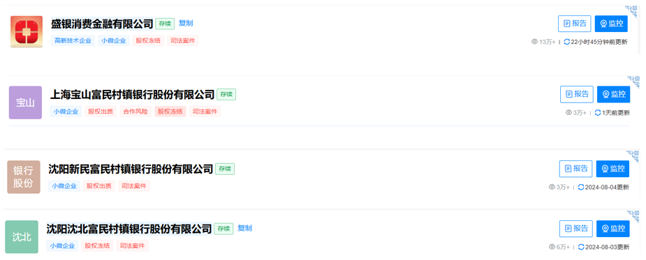 另据天眼查app,盛京银行对外投资的7家公司中,有4家公司都存在不同程度的股权出质或冻结的情况。