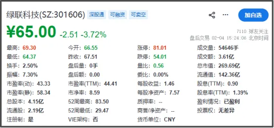 资本市场面上,1月28日,受到AI NAS概念爆发和公司业绩预期向好,绿联科技股价创历史新高,股价一度达到83.5元/股,总市值突破340亿元。此后略有回调,截至2月4日收盘,绿联科技报65元/股,当日下跌3.72%,总市值269.69亿元。近一年公司股价累计上涨约51.69%。