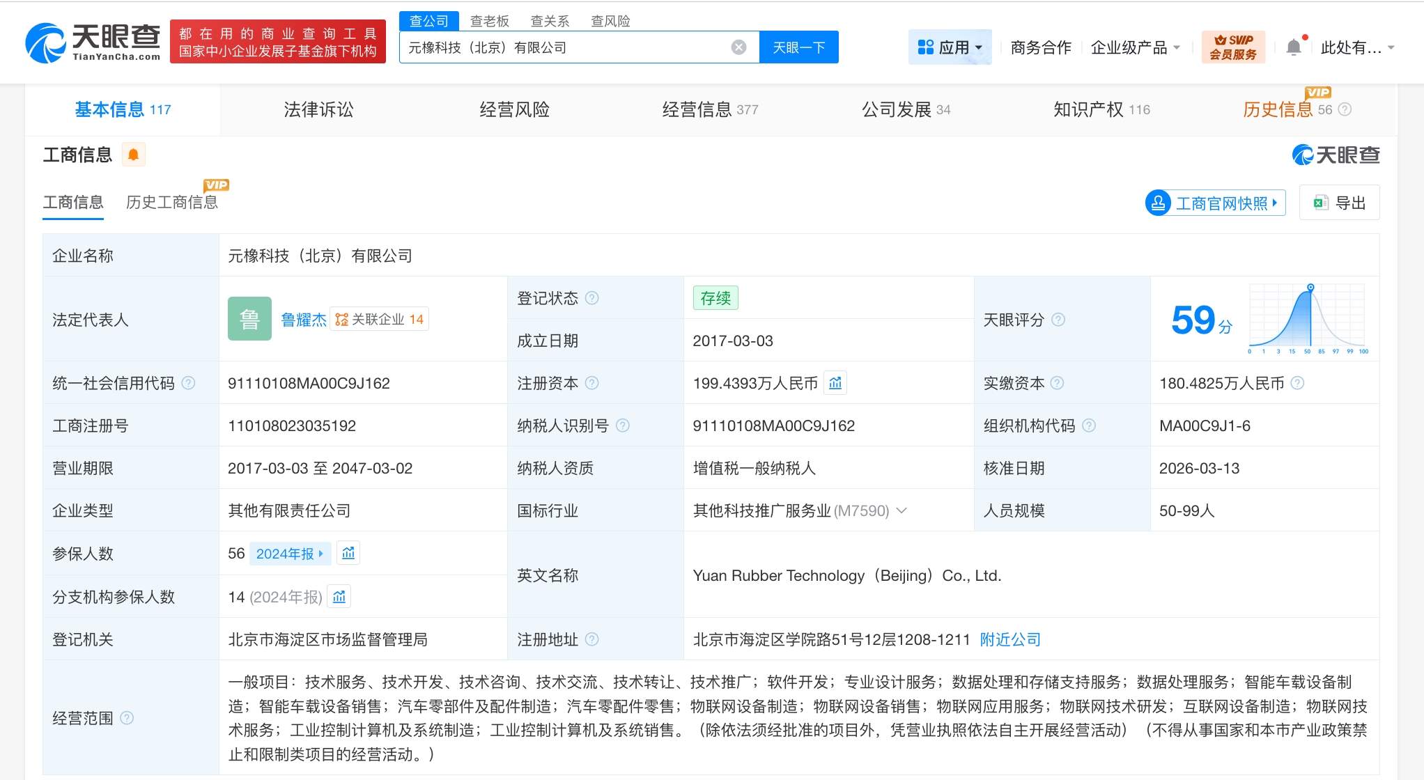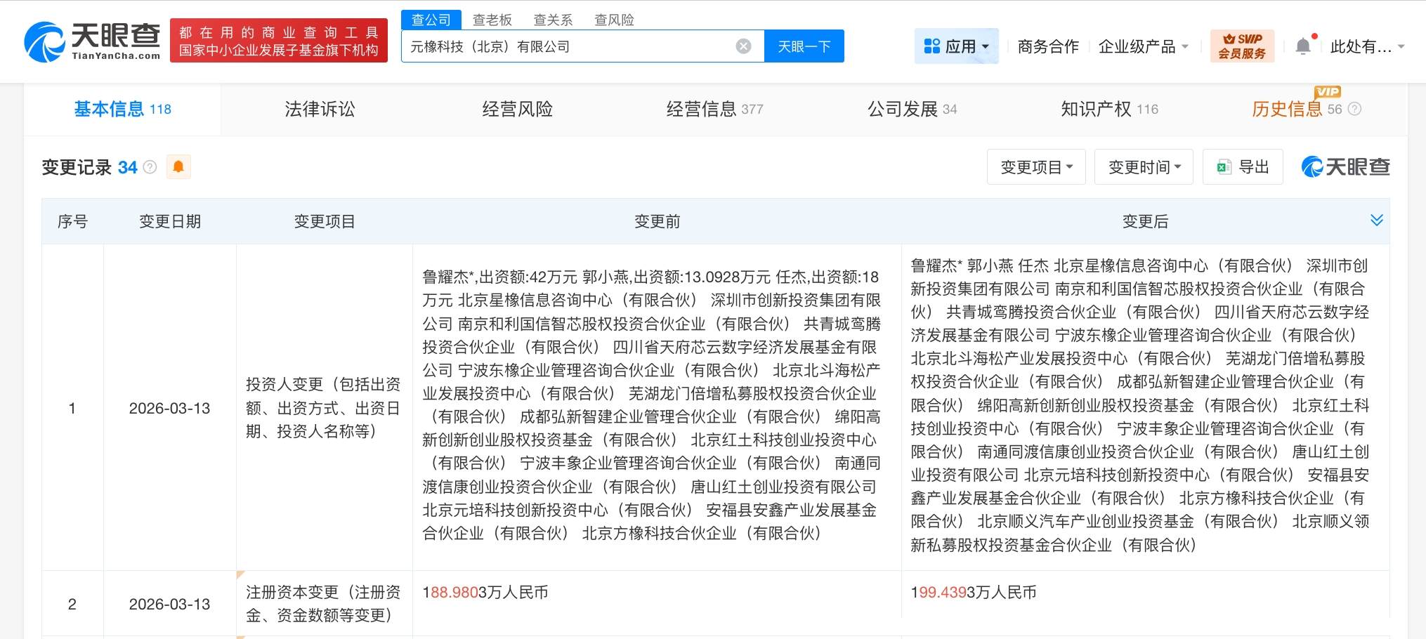 元橡科技(北京)有限公司成立于2017年3月,法定代表人为鲁耀杰,经营范围含专业设计服务、数据处理和存储支持服务、数据处理服务、智能车载设备制造、智能车载设备销售、物联网技术研发等。股东信息显示,该公司现由鲁耀杰、唐山红土创业投资有限公司、北京北斗海松产业发展投资中心(有限合伙)及上述新增股东等共同持股。