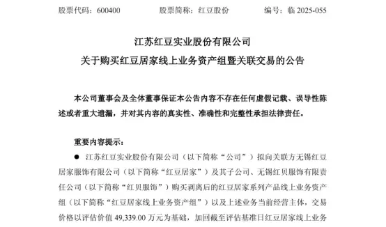 10月15日,红豆股份发布公告称,拟以4.85亿元收购关联方红豆居家旗下的"红豆居家线上业务资产组"。这一交易价格与标的资产的实际价值形成巨大反差。
