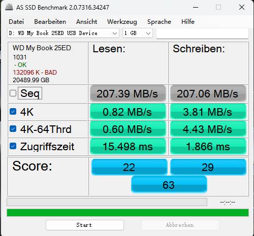 为了测试西数My Book™台式硬盘的读写性能,我们使用了CrystalDiskMark和AS SSD Benchmark两款专业软件。