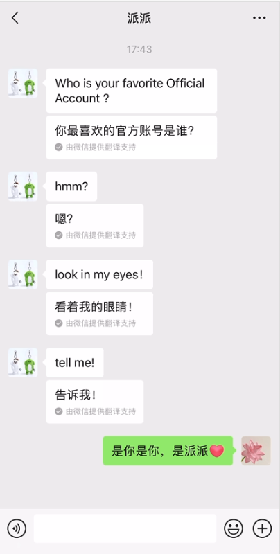 据“微信派”公众号消息,继“附近的工作”之后,微信又上线新功能,可自动翻译聊天中收到的信息。