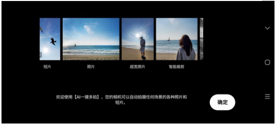 通过AI一键多拍功能,我们仅需点击快门按钮并四处平移,相机将自动拍摄最佳的场景照片和剪辑,手机可以在3到10秒的拍摄时间内拍摄多达14种不同类型的照片和视频。