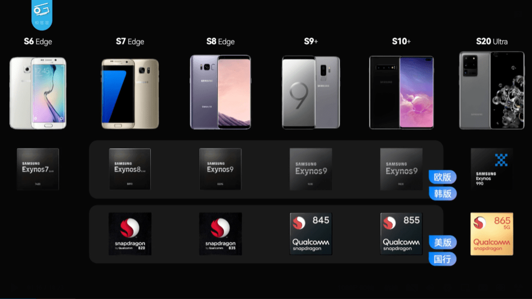 三星自家的旗舰手机通常会采用双芯策略,也就是韩版和欧版采用猎户座芯片,而国行和美版采用高通骁龙芯片。