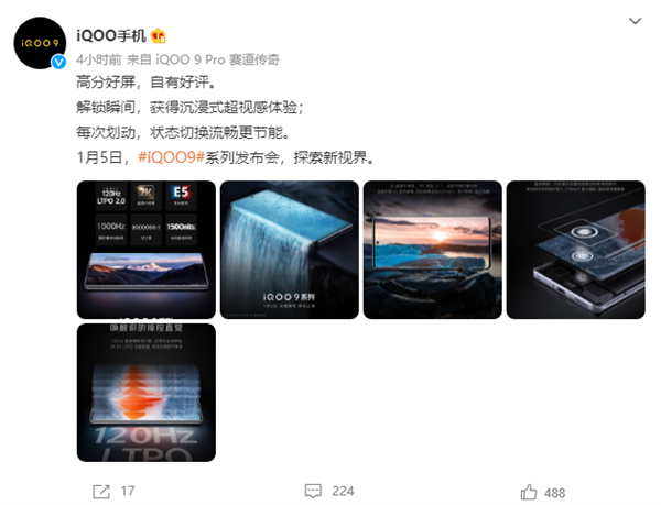 iQOO 9屏幕参数公布:搭载2K E5屏+LTPO2.0可变刷新率技术快讯