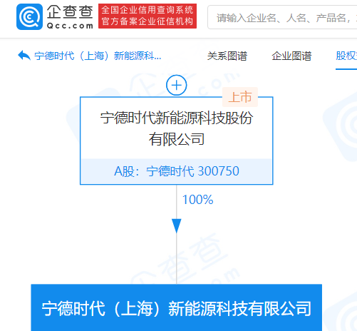 宁德时代(上海)新能源科技有限公司成立,企查查股权穿透显示,该公司由宁德时代(300750)100%控股。