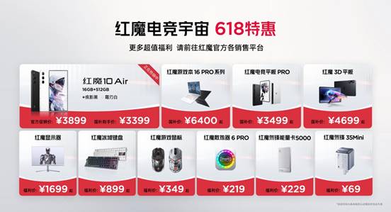 618狂欢期间,红魔全系列生态产品,限时直降,以超低福利价惊喜返场,助力玩家轻松实现电竞装备升级。