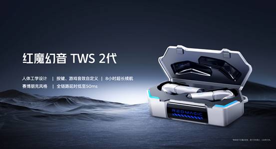 红魔幻音TWS 2代,赛博朋克设计风带来酷炫科技感。并且它还能做到全链路延迟低至50ms,单次续航8小时,售价399元,满足玩家沉浸式听声辨位需求。