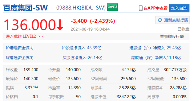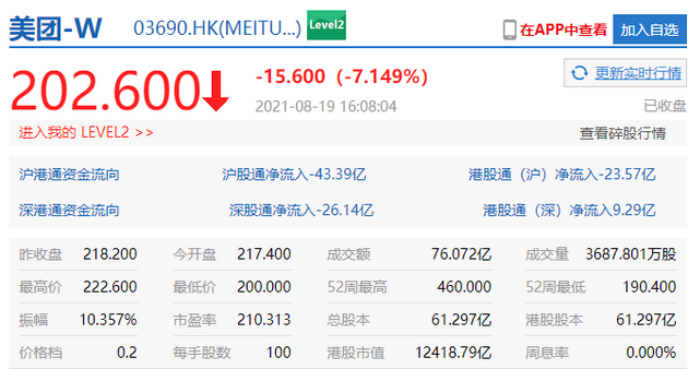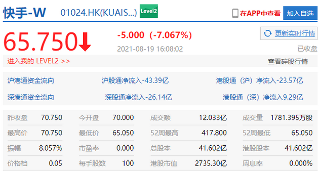 8月19日下午消息,港股科技股收盘普跌。美团、快手跌超7%,阿里跌超5%,腾讯跌超3%。京东、百度、网易、哔哩哔哩跌超2%。