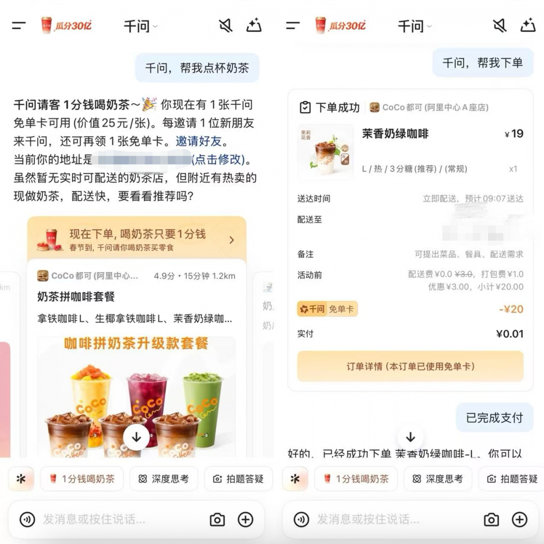 千问30亿“春节请客计划”上线 免费奶茶喝上了快讯