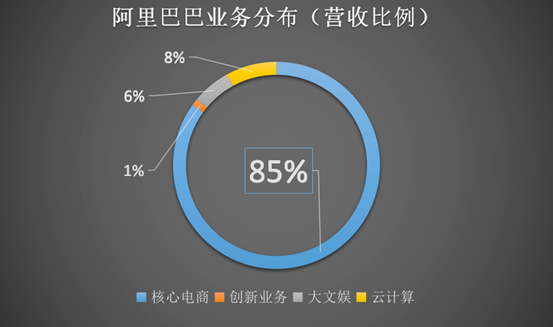 核心电商业务永远是阿里的根基。这种现象保持了20年,纵使“盘子”再大,核心电商始终没有“掉队”的趋势。