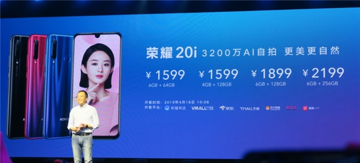 荣耀20i正式发布:3200万AI自拍,售价1599元起快报