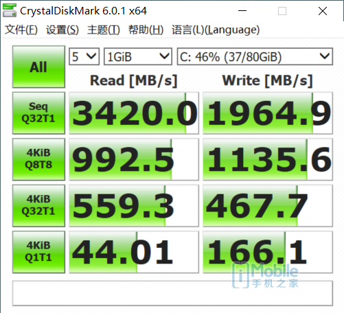高达3420MB/s的持续读取速度和1964MB/s的持续写入速度更是说明这块固态相当靠谱且给力。