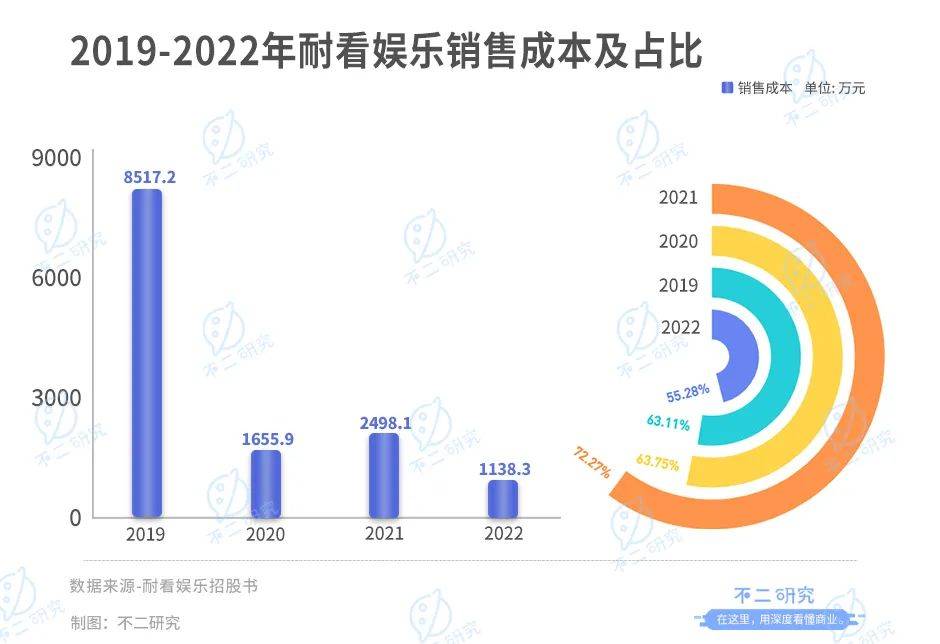 与此同时,在支出方面,2019-2022年,耐看娱乐的销售成本分别为8517.2万、1655.9万、2498.1万和1138.3万元,占总收益的63.11%、63.75%、72.27%和55.28%。