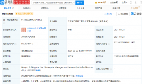 吉利关联公司同日成立极氪二号、三号企业管理合伙企业快报