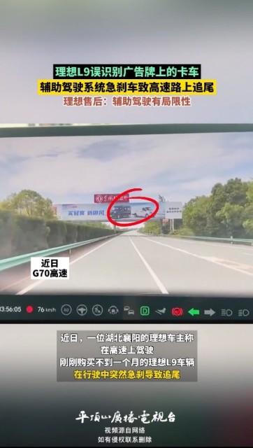 理想L9误将广告识别为真车致追尾,官方回应:后续会改进软件系统快讯