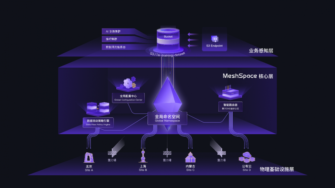 训练数据网MeshFS、全局对象网MeshSpace、推理内存网MeshFusion,AIMesh是专为AI场景打造的全栈AI数据方案,分别打破制约 AI 效率的 IO 墙、数据重力墙和内存墙。