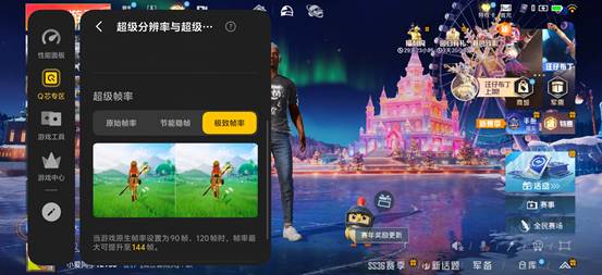 在《和平精英》中,我们开启,1.5K超分技术让远处的敌人更加清晰可见,144FPS的高帧率则让画面流畅度大幅提升,无论是快速移动还是瞄准射击,都能感受到极致的流畅感。不仅如此,在Monster+模式并搭配官方散热背夹的条件下,该机还能够开启1.5K超分+ 144FPS 超帧并发,可以将画面细节提升到一个新的高度。