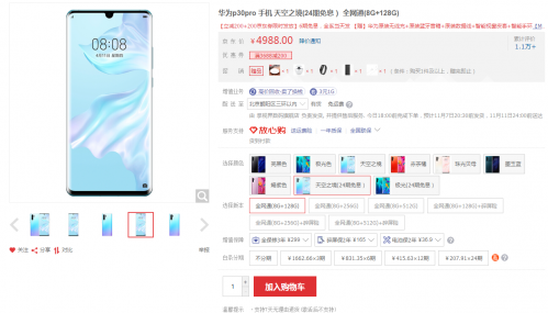 以华为在今年上半年发布的顶级旗舰华为P30系列为例,华为P30现在双十一价格在京东商城已经下探至3688元起、P30 Pro也仅为4988元起。这对比当时首发价最多有500元的降幅(华为P30国行版起售价为3988元、P30 Pro为5488元)。
