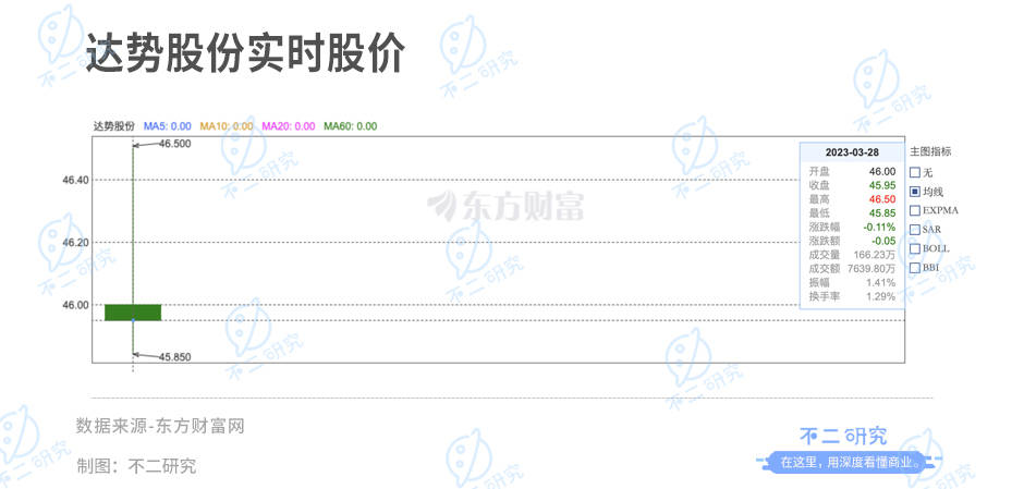 截至3月28日港股收盘,达势股份报收45.95港元/股(折合人民币40.32亿元),对应市值59.13亿港元(折合人民币51.88亿元)。