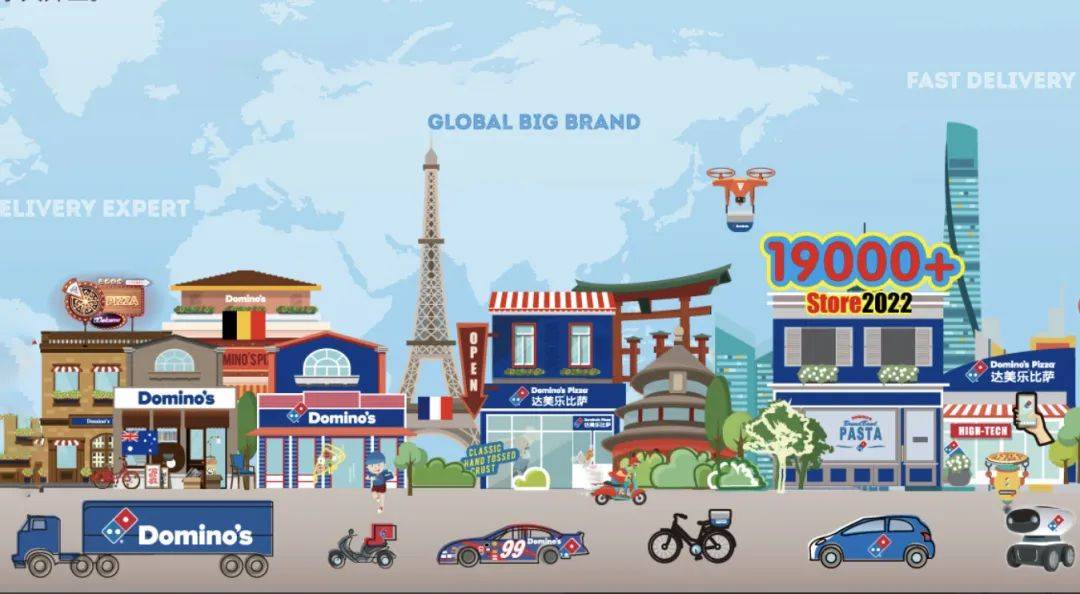 按2022年的全球零售销售额计算,达美乐中国的全球特许权授予人Domino’s Pizza, Inc.是全球最大的比萨公司。