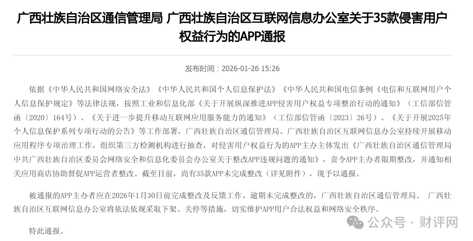 广西通信管理局2026年1月26日的一纸通报,让“随心借”APP再度曝光于公众视野。这已是其主办方南宁市同正旭宁小额贷款有限公司在半年内第二次被点名。